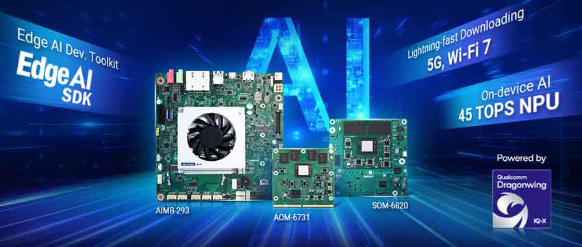 Advantech has introduced its latest suite of edge AI compute solutions powered by the Dragonwing IQ-X platform – the AOM-6731, AIMB-293 and SOM-6820. Built on this platform, these innovative products are engineered to meet the demanding requirements of modern industrial applications by delivering good processing power, integrated AI acceleration with up to 45 TOPS of AI performance and robust and fast 5G and Wi-Fi 7 connectivity into an industrial PC.
